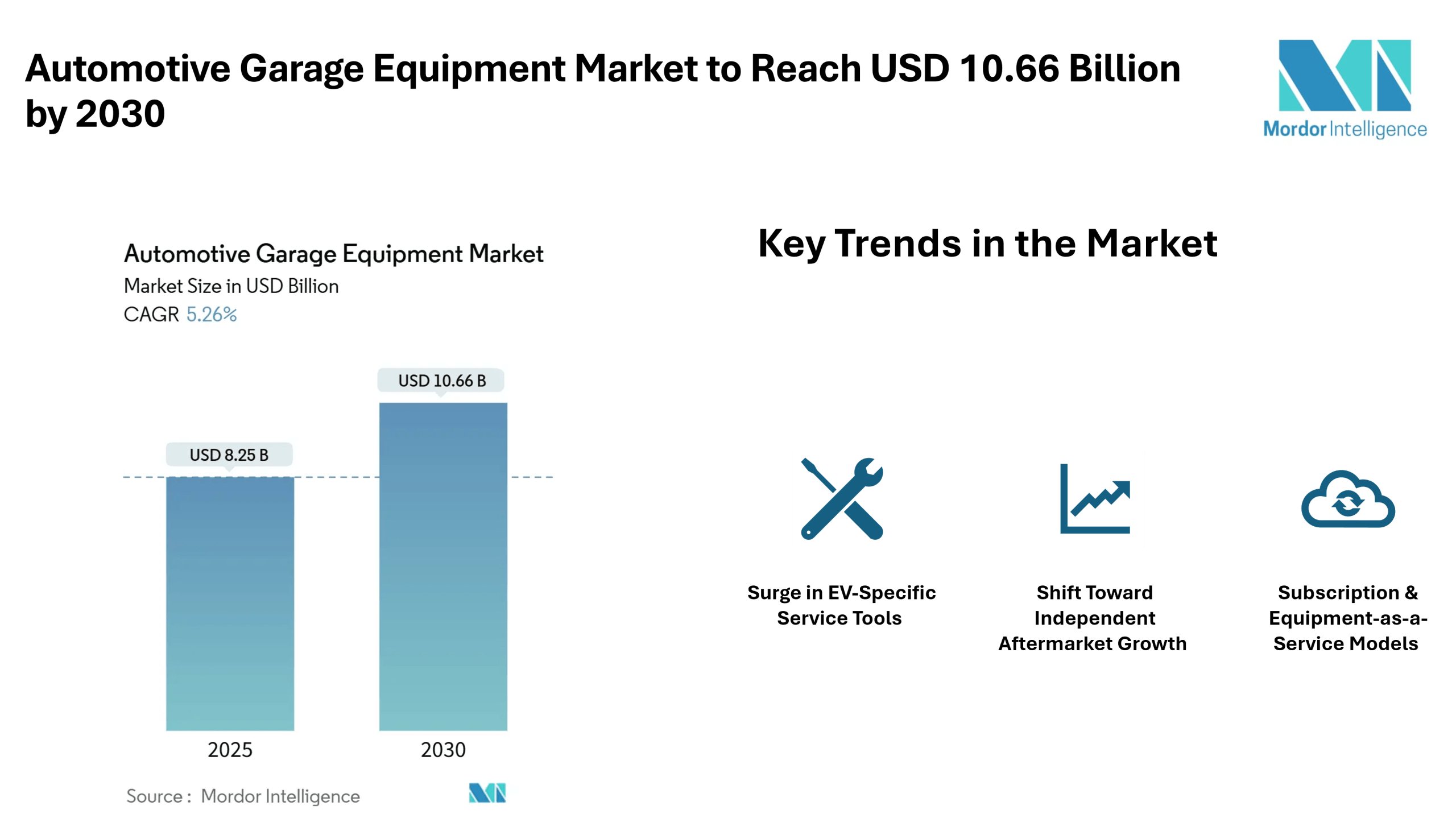 Home Press ReleasesAutomotive Garage Equipment Market to Reach USD 10.66 Billion by 2030, Fueled by Emissions Rules & EV Workshop Tools Trends – Mordor Intelligence