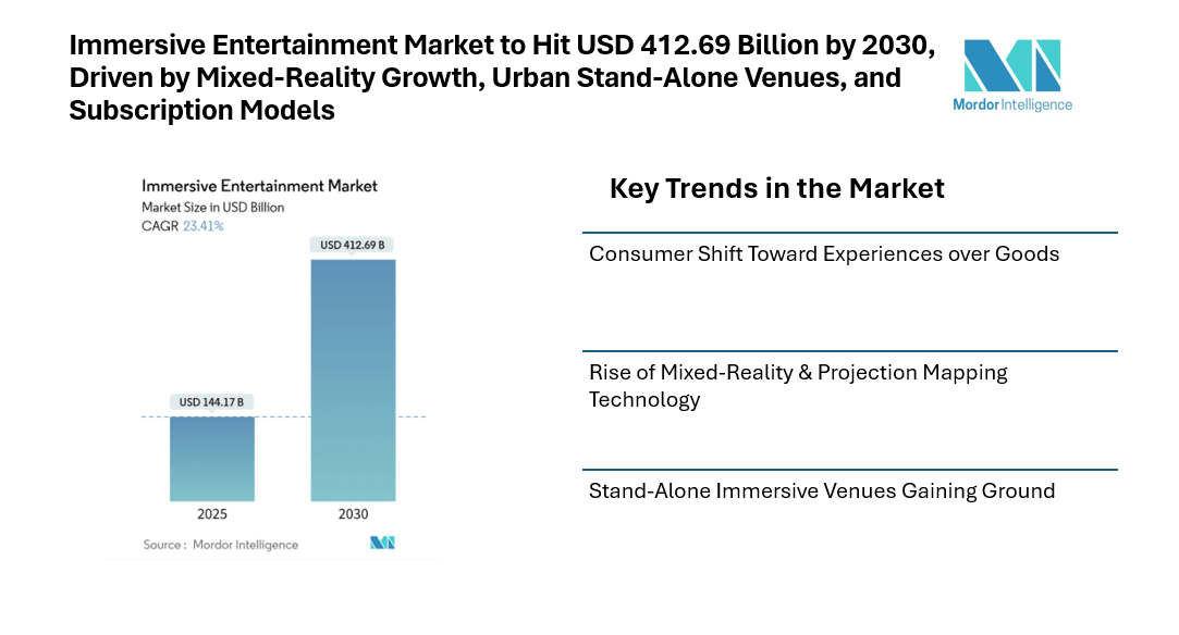 Immersive Entertainment Market to Hit USD 412.69 Billion by 2030, Driven by Mixed-Reality Growth, Urban Stand-Alone Venues, and Subscription Models