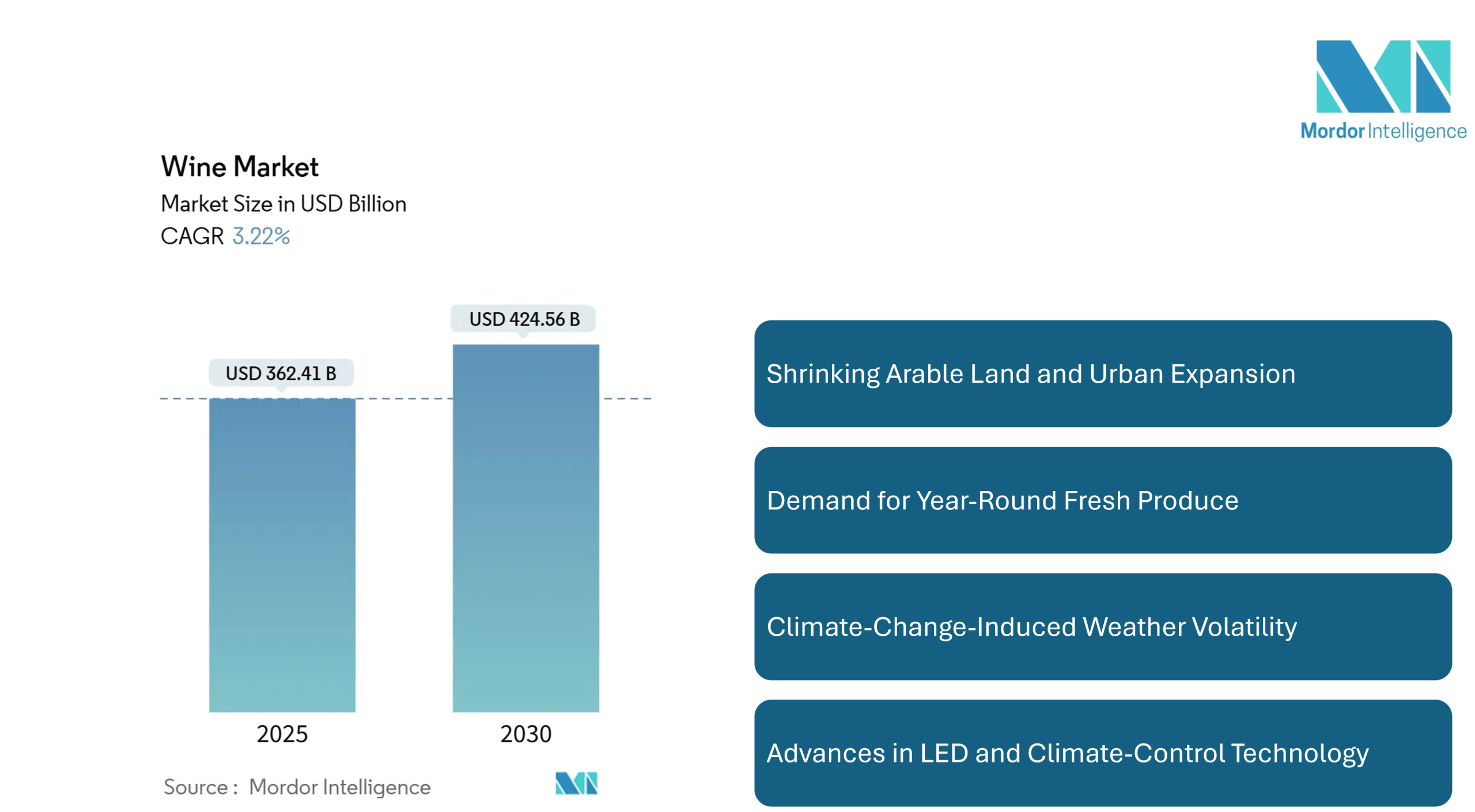 The global wine market, valued at USD 362 billion in 2025 and projected to reach USD 425 billion by 2030 with a CAGR of 3.22%, is set to maintain steady growth, reaching new heights by 2030. Increasing demand for premium, flavored, and fortified wines is driving this expansion. While the COVID-19 pandemic affected on-trade wine consumption, home consumption grew in regions like North America and Europe. As restaurants and bars reopen, the market is expanding by catering to changing consumer tastes, convenience, and quality preferences.